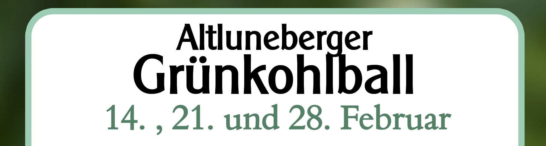 Altluneberger Grünkohlball am 14. Februar, 21 und 28. Februar 2026. Essen & Trinken zum Pauschalpreis. Stimmung und Party mit DJ. Wir freuen uns auf Ihre Reservierung.