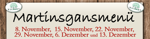 Genießen Sie Spezialitäten rund um die Martinsgans im Landgasthof Wichern in Altluneberg. Im November und Dezember bieten wir mehrere Termine für unser leckeres Martinsgansmenü an. Reservieren Sie Ihren Tisch bitte rechtzeitig – unsere Martinsgans ist immer sehr begehrt.